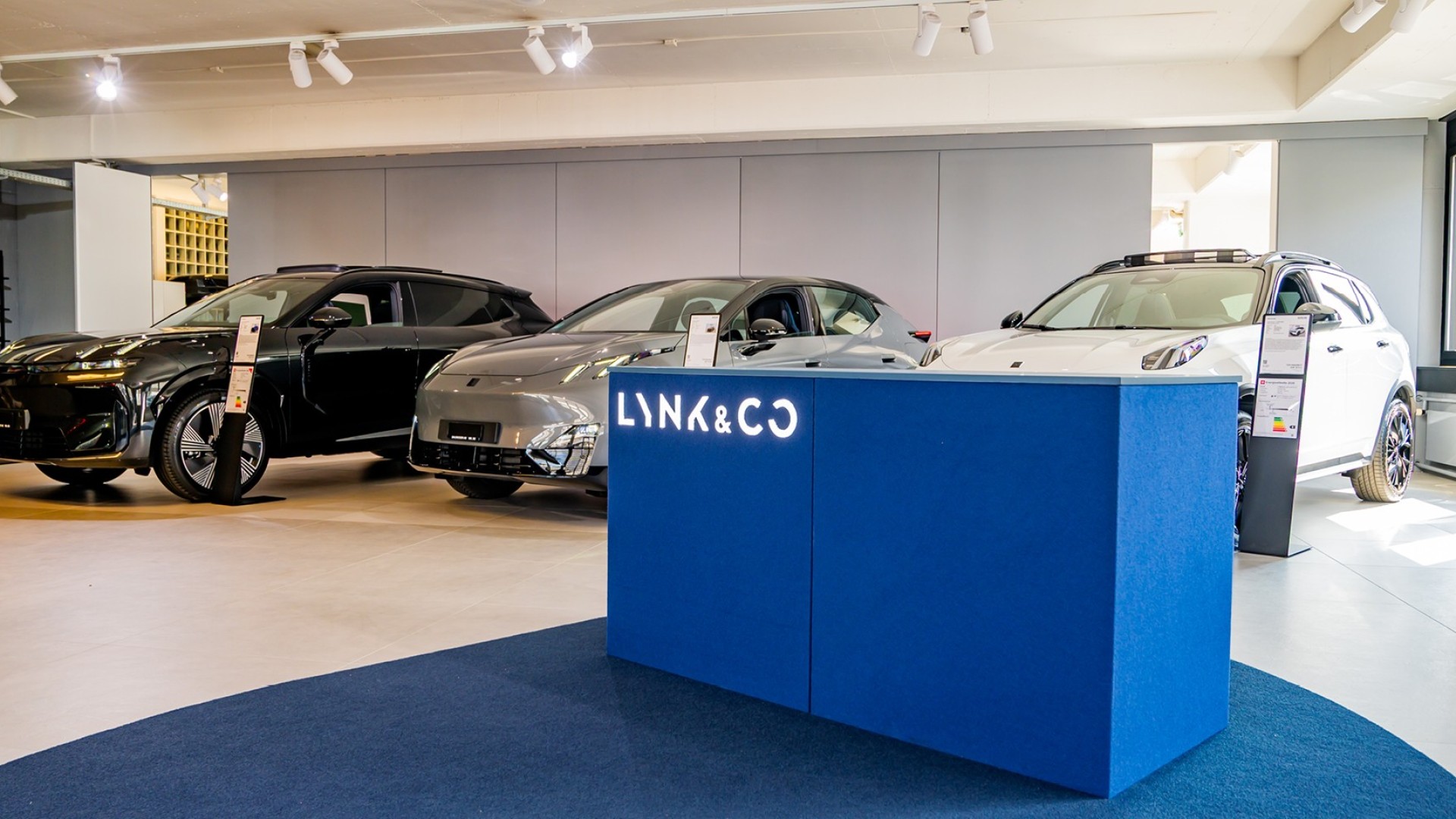 Auf rund 200 m² präsentieren wir fünf Modelle in einer modernen, funktionalen Umgebung, die auf eine klare und intuitive Customer Journey ausgelegt ist. Unsere Besucher können die Fahrzeuge vor Ort entdecken, individuelle Beratung erhalten und mehr über die Technologie und das gesamte Produktportfolio von Lynk & Co erfahren.